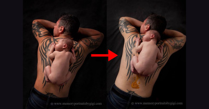 爸爸本來想要拍張很感人的照片,結果寶寶不配合,「噗」的一聲…