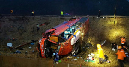 韓國遊覽車翻覆車體未嚴重變形,死傷情況跟「蝶戀花」完全相反。