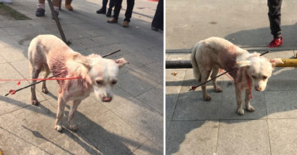 無辜白狗被人殘忍「射兩箭刺穿身體」,看到他手術後「散步的模樣」大家都忍不住哭了…(非趣味)