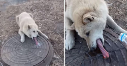 絕對急凍!小狗狗「舔水溝蓋」險斷舌,路人手刀帶一瓶水來解救! (影片)