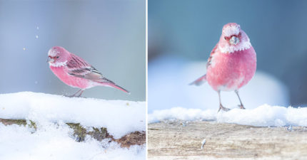 活生生的玫瑰!他在雪地拍到「粉色奇鳥」 光照片就感到滿滿戀愛運