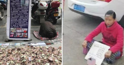 路人乞丐跪趴街头旁堆一团枯叶堆 仔细一看傻眼:好几个月的薪水啊!