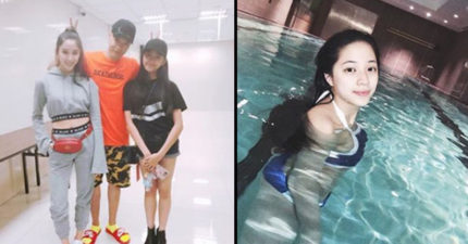13歲歐陽娣娣身材「絕美到姐姐想哭」,「泳池比基尼浮奶照」驚呆網友:她真的大了!