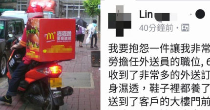 下大雨全身濕遭奧客投訴 外送員「獎金泡湯」:我都沒錢吃飯了