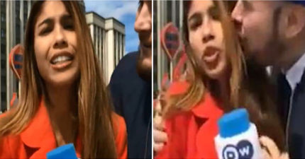 影/辣妹記者被球迷「痴抱親吻」 1秒複雜表情閃過→繼續專業播報