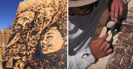 藝術家用「太陽作畫」 放大鏡聚焦陽光燒出最美麗風景!
