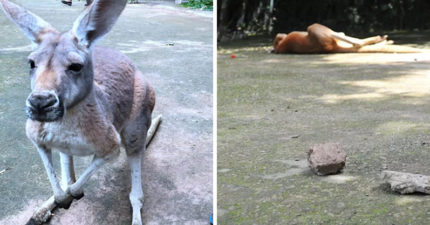 強國遊客狂!好想看袋鼠跳高高 直接抄起手上石頭丟腳:快~啊~