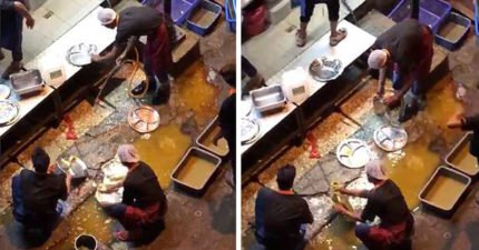 影/顧客驚見店家「馬路上水坑洗碗」 泥水直接往餐盤沖!