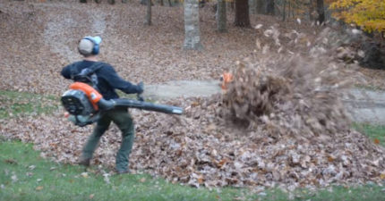 老爸清掃落葉小山 吹開後「小怪物尖叫竄出」讓他嚇到跌坐在地
