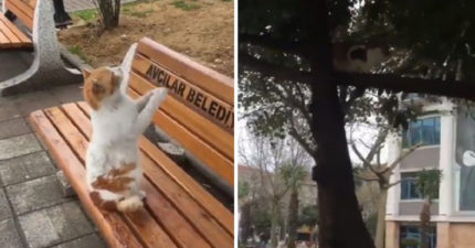 喵星人雙手合掌「拜託拜託」 向老婆大人道歉:我錯了快下來QQ