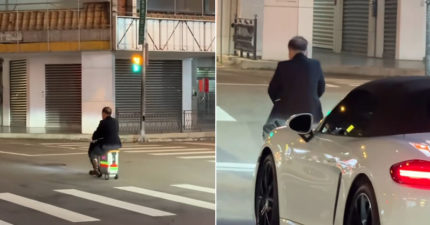 影/台中阿伯「騎行李箱上路」 保時捷都得讓?警方回應了