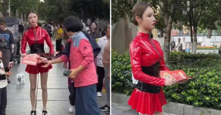 影/「正妹機器人」街頭發傳單 群眾包圍搶拿…仔細看她眼睛愣住了