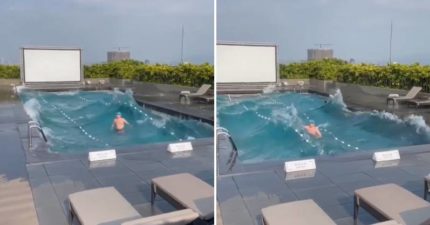 影/台北飯店泳池「地震晃出巨浪」 他晨泳狂飄!網驚:變馬拉灣