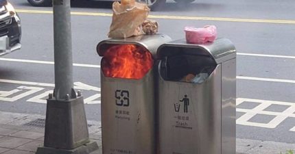 台北路邊垃圾桶「竄出火舌」 網驚:公用回收金爐
