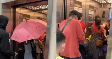 電梯變「水簾洞」民眾撐傘搶搭!危險1景象網嚇傻:在台灣