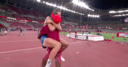 奧運史上第一次「雙金牌」 男子跳高選手嗨翻相擁:我們一起!