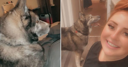 她宿醉醒來…床上多一隻「陌生二哈」回頭狠盯!翻手機才知事情大條