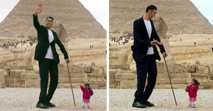 世界上「最高男人和最矮女人」碰面 拿手機自拍「手機比頭更大」畫面萌翻天!