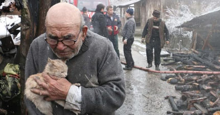 房子燒成灰燼!83歲爺爺發現愛貓活著 撐著拐杖「緊抱毛孩哽咽」全網心碎