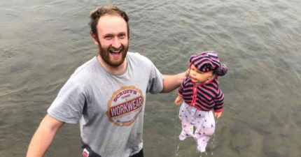 男子驚見湖上浮著「紅衣嬰兒」馬上跳湖救援,冒險跳進寒冷河中…結果救到後發現是假娃娃…