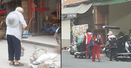 拾荒駝背婆婆每天推車養失智老公,2國中妹寒風中「暖心護送」後面路人噴淚!