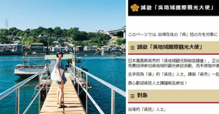 日本吳市「灑狗血找觀光宣傳大使」,免費4天3夜招待爽爽玩「只給姓吳的台人!」