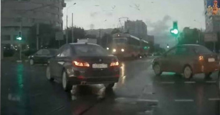 看了10遍還是很靈異!行車記錄器清楚拍下「幽靈車」猛然衝出路口。