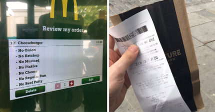 她去麥當勞點漢堡但「去掉洋蔥、番茄醬、芥末、酸黃瓜、起司,肉片、麵包」,最後慘GG…
