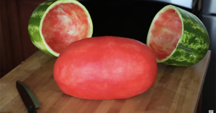 當他把這個西瓜直接打開來時…光滑到我覺得有點噁心了…