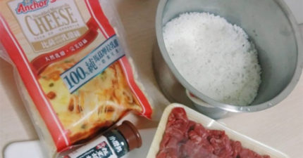 他先是把一大堆飯倒到電鍋裡,最後拿出來的「最完美披薩」讓我發現飯才是披薩最好的材料!