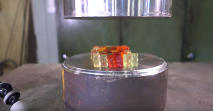 當用液壓機對抗最欠壓的小熊軟糖時,有點意外的畫面讓我看得太爽了!
