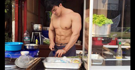許多人看到這間泰國餐廳門口的「肌肉帥主廚」就衝進去,沒想到進店坐下後才發現「好料都藏在裡面」!