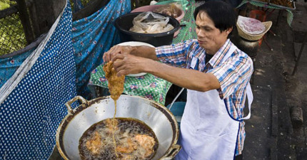 看到他這樣炸食物沒什麼,但他下一個動作真的把我給嚇壞了!