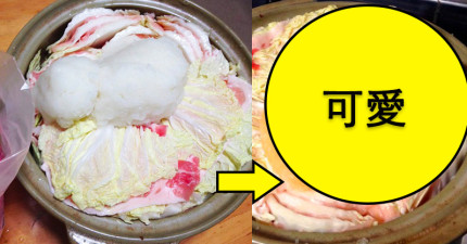 他將一大坨蘿蔔泥放進火鍋時看起來超不可口,但是看他雕塑完成後可愛到大家都吃不下去啊!