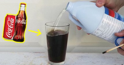 當他將「漂白水」加進「可樂」裡頭之後…最神奇的變身就開始了!