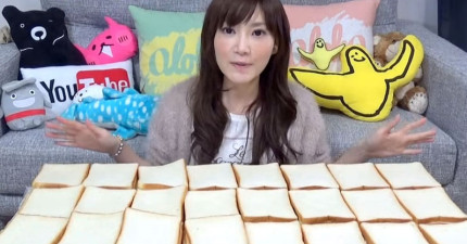 這個超瘦的美女要挑戰「一口氣吃完100片吐司」,沒想到這個挑戰對她來說最困難的部分是…