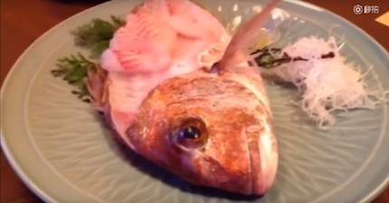 這道生魚片在18秒後所發生的事,可能會讓店家除了「被客訴」以外還要「付錢幫客人收驚」。
