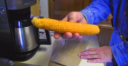 他把「一整條玉米」放到微波爐裡,3分鐘後立馬創造出「比爆米花好吃100倍」的神物!
