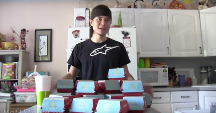 他在得來速花4300元買了25個大麥克,並且讓你看他在22分鐘內「全部吃光光1.3萬大卡」打破了世界紀錄!