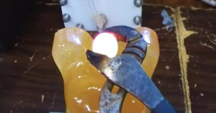 燒得火紅的鎳球又來了啦!這次要放到世界最大的小熊軟糖上面…看得好紓壓!