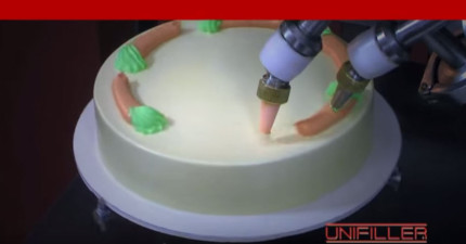 我以為蛋糕裝飾都一定要手動畫上去,機器自動裝飾的過程比特技表演還要精采!