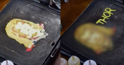 當他把左邊那個煎餅翻到另一面看到真面目時,每個《復仇者聯盟》迷都會大聲尖叫出來!