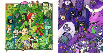藝術家把人氣電影角色「按顏色分類」!黑隊「全都是BOSS」、藍隊的角色你一定都認得