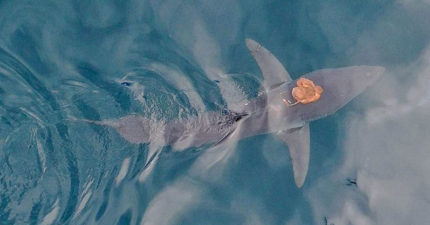鯊魚頭上有傷?科學家空拍近看驚「是章魚搭便車」:前所未見
