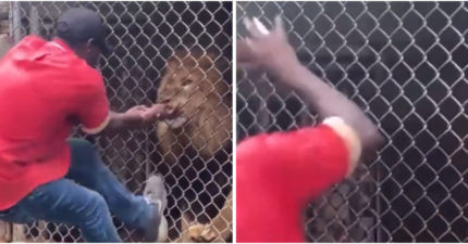 男逗弄獅子被死咬!拔出後「剩一根白骨」驚悚影片曝