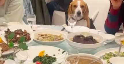 埋頭吃喜酒「感覺被盯著看」 猛一抬頭驚:對面的怎麼變成狗?