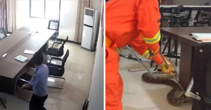 蟒蛇闖派出所!員警嚇歪找同事求救「119嗎?我是110」:有點大,不敢抓