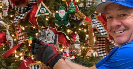 聖誕樹「莫名搖晃」他嚇到 定眼一瞧裡面竟「有小動物跟著她回家」