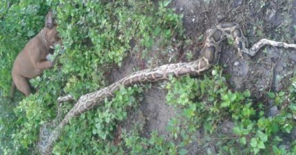 聽叫聲衝到後院目睹「比特犬躺在巨蟒邊」 主人心頭一震…下秒卻感謝牠