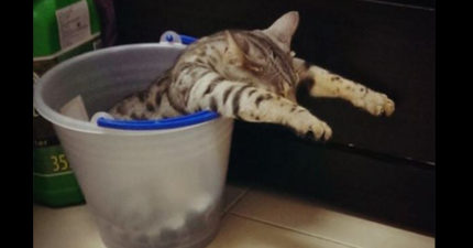 主人發現貓咪有時會喜歡躲到小水桶裡面,後來才驚覺「他是殭屍貓」!